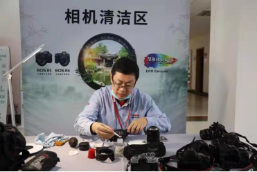 除此之外,佳能还请来了专业工程师,为广大师生义务保养、清洗相机,也是最后一个展区--相机清洁区。广大师生看到自己的爱机,在工程师的精心清洗过后,焕然一新,纷纷向工程师表达了由衷的感激。