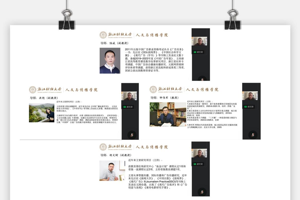 举办了浙江工商大学专场研究生招生线上宣讲。汉语言文字学硕士生导师徐键老师、新闻与传播专业硕士生导师胡文财老师、国际中文教育专业硕士生导师姚晓萍老师进行此次宣讲。