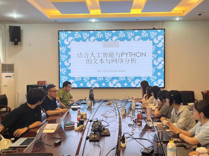 5月15日,学院7号楼404会议室,“数字+人文”研究生工作坊的第一期活动拉开序幕。本次工作坊邀请到浙江工商大学林施望老师。林老师以“结合人工智能与 Python的文本与网络分析”为主题,为到场的数十名研究生进行讲解与实操指导。