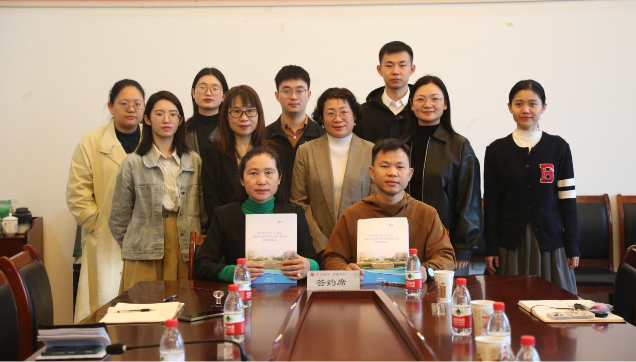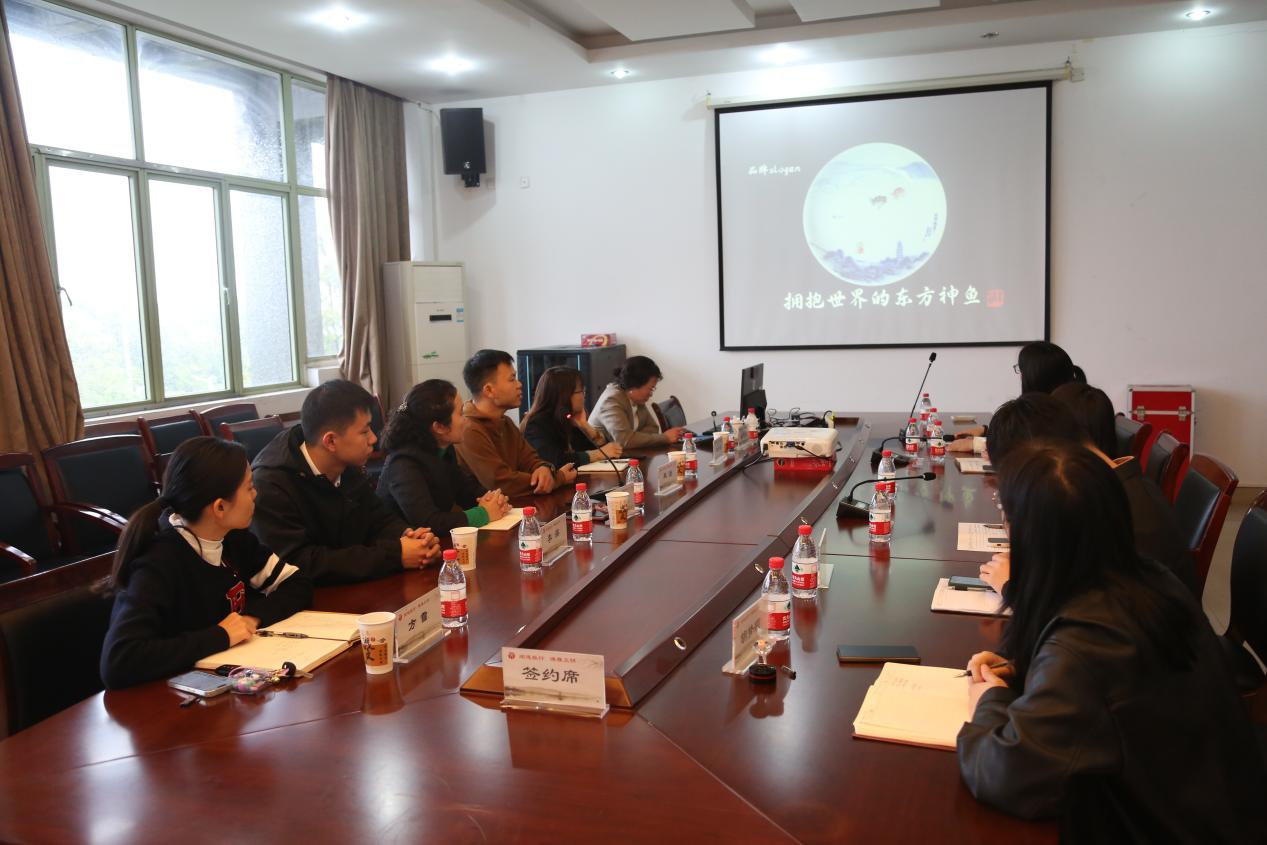 404会议室举行。学院党委书记罗金艳、副院长林香娥、副书记袁慧兰、景德镇市水至清鱼文化有限公司董事长朱清,以及学院全体行政人员共同出席签约仪式。
