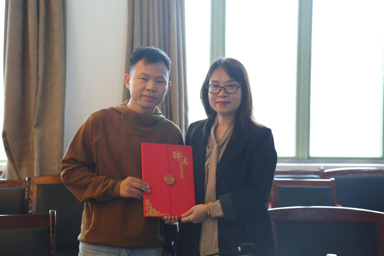 罗金艳代表学院与朱清签署了基金捐赠协议和实物捐赠协议,并举行了“青花五彩金鱼福瓶”定制款陶瓷交接仪式。林香娥代表学院为朱清颁发了成人在线