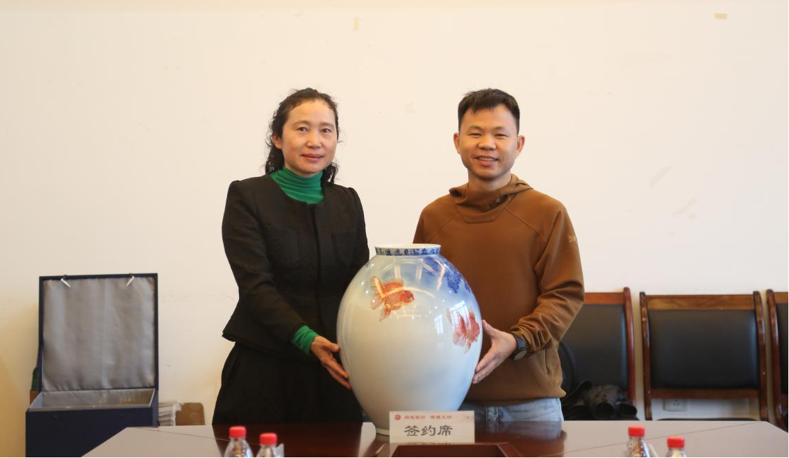 罗金艳介绍了学院基本情况。对德镇市水至清鱼文化有限公司为学院捐款设立的“陶艺美育教育基金”,鼓励支持学院开展陶艺美育教育,表达了由衷的感谢,并表示将最大限度地发挥好基金的作用,同时希望未来校企双方继续携手并进,共同促进双方各项事业的进步和发展。