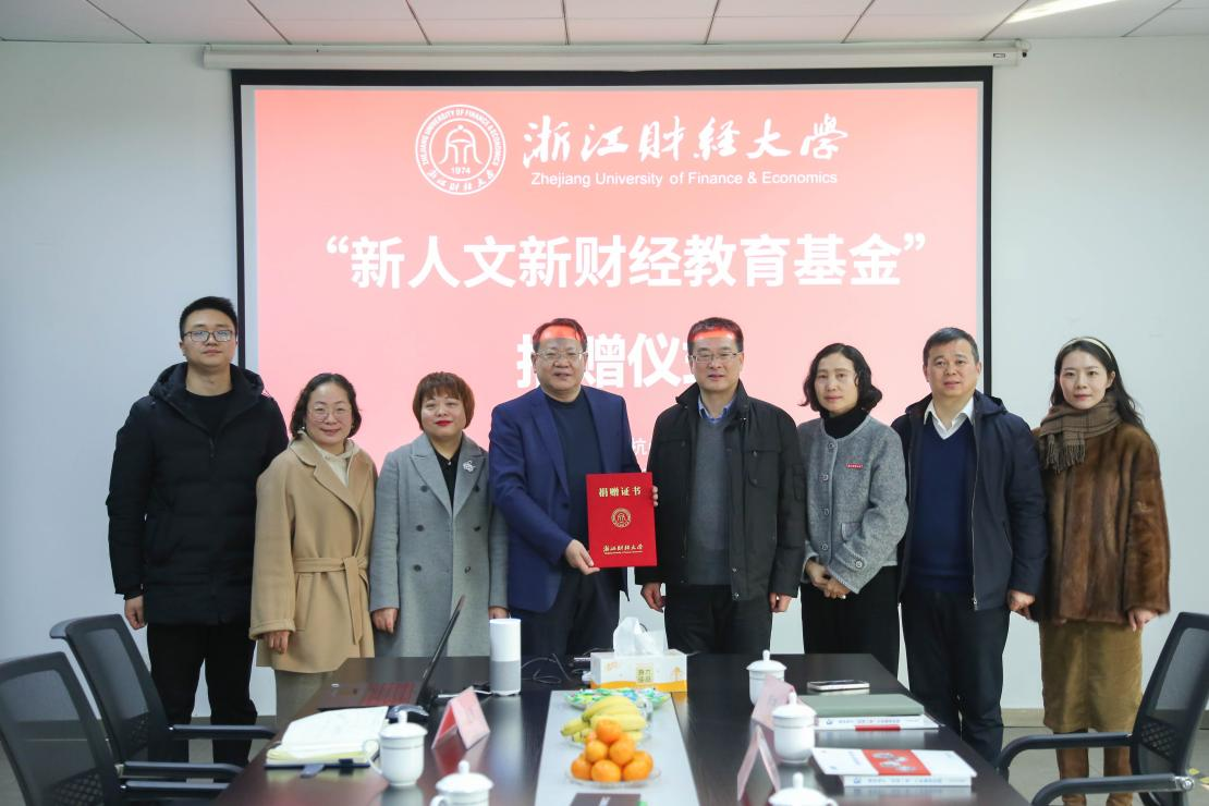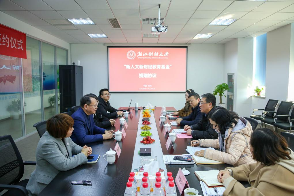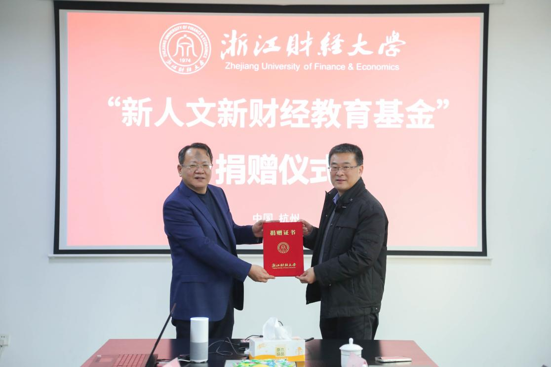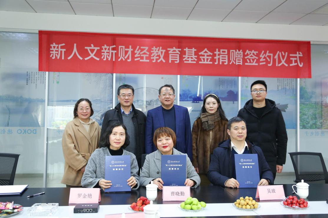 共同成立“新人文新财经教育基金”。校党委副书记徐晓东、杭州德创电子股份有限公司董事长李云水出席签约仪式。