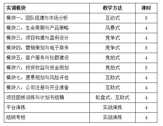 根据推动创新创业教育的有关精神和我校的创新创业教育计划,学校将联合杭州市人力资源与社会保障局和正保教育,开设《“8+X”模拟公司创业实训》第二课堂实训学习项目,培训共分为14次课,56学时,折合第二课堂2.5学分,计入培养方案的第二课堂模块。培训内容上主要覆盖了创业者在创业过程中需要了解和掌握的创业调研、项目选择、经营管理、市场营销和企业开办等相关内容,由于本项目受杭州市人力资源与社会保障局资助,实训考核合格由杭州市职业技能指导中心颁发《创业实训学员合格证书》和创业学院二课程修课证明。