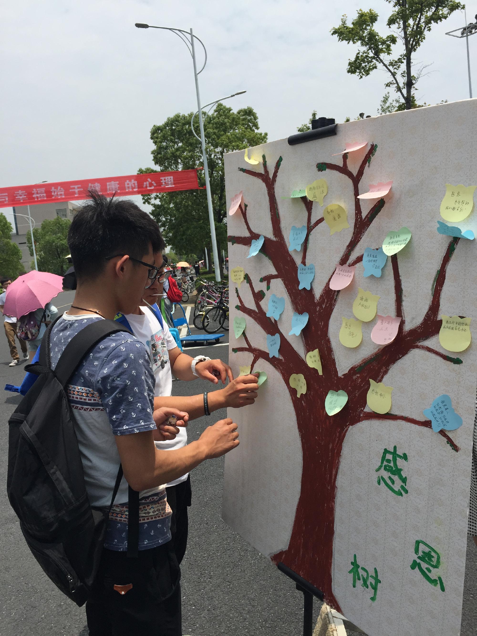 一位哲人说过,“一个知道感恩的民族才是一个最有希望的民族。”感恩,展示了人性的善良美德,以感恩墙的形式推广大学生心理健康月的宣传,调动大家的活动积极性,增强了大家对生活的热爱,用一颗感恩的心去拥抱生活。