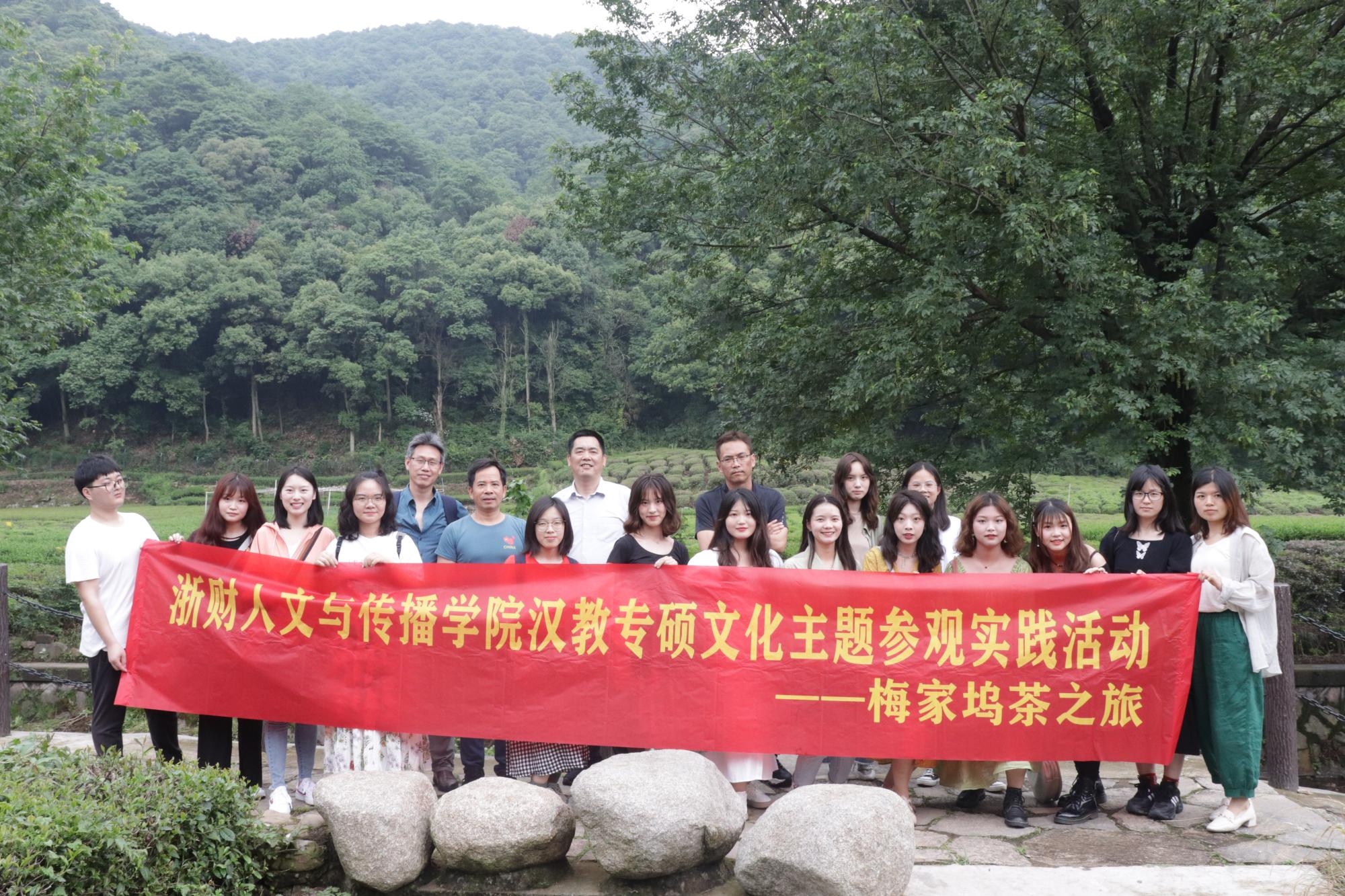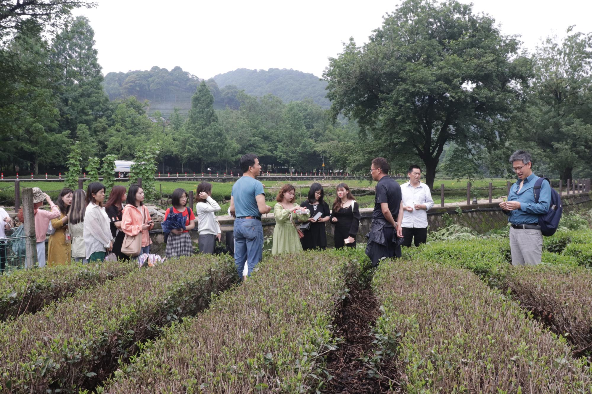 院长周保欣、汉教专硕点负责人刘传鸿、教授委员会主任赵顺宏及研究生辅导员刘华婷老师带领汉语国际教育专业硕士20余人一起前往著名的西湖龙井茶产地—梅家坞,开启了茶文化主题参观学习活动。