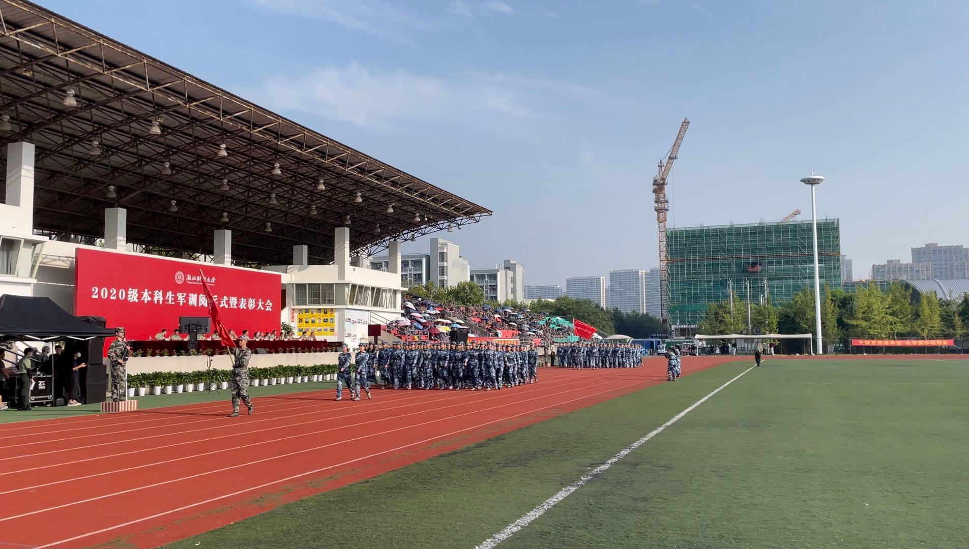 20级本科生军训结业典礼于西操场顺利举行。学校领导、教官和各学院老师代表出席,各学院学生参加检阅。成人在线