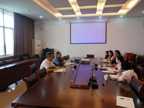 随后,在学院楼404会议室,学院党政领导班子进行了工作汇报。院长周保欣简要介绍了学院在学科与专业建设、师资队伍建设、科学研究、人才培养等方面的情况,对学院未来“两个融合”发展思路和当前存在的难点问题进行了汇报。学院党委书记高燕就学院从严治党和党建品牌建设等方面的问题进行了汇报。副院长陈静、党委副书记袁慧兰、院长助理吴智斌分别就分管工作作了汇报交流。