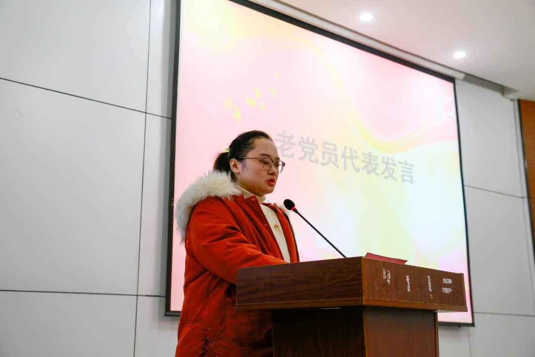 宣誓完毕,徐航宇同志代表新发展党员发言,她表示今后会更加勤奋学习,不断加强党性修养,坚定共产主义理想信念,在思想上、行动上与党组织保持高度一致,在生活、学习和工作中起到先锋模范作用。紧跟时代步伐,不断提升为人民服务的本领和能力,为党的建设做出贡献。