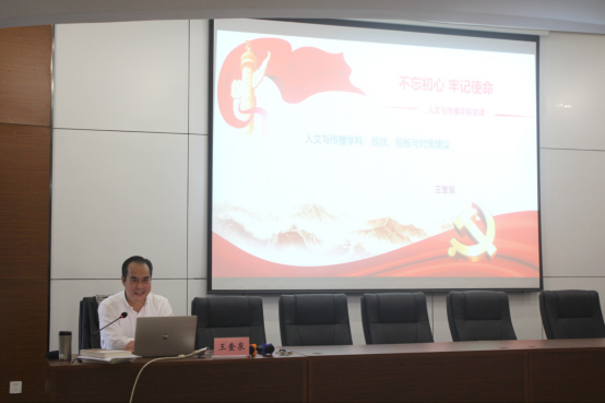 以“人文与传播学科:现状、短板与对策建议”为题,为学院全体教职工上了一堂“不忘初心,牢记使命”主题教育专题党课。