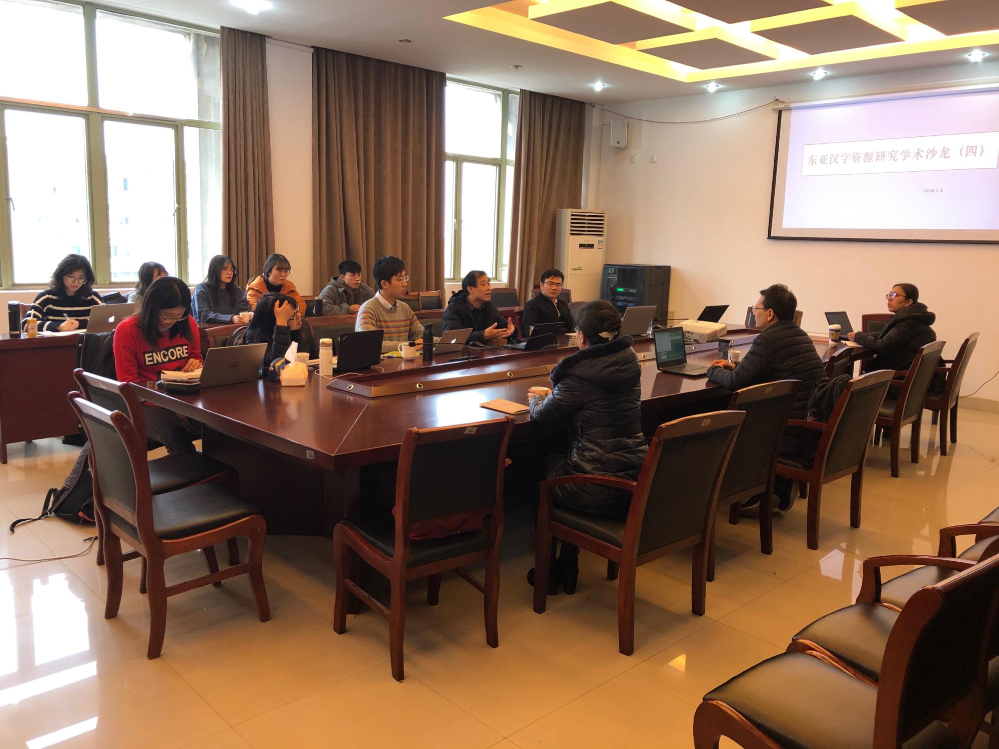 2020年1月8日上午,东亚汉字资源研究中心在7-404举行第四次学术沙龙。此次沙龙主题为“汉字域外传播史(4)”,由中心主任何华珍教授主持,浙江师范大学张磊副教授,南京大学金烨博士,郑州大学黄莹博士、李宇博士、陈德裕(越南)博士,我中心刘亚辉、王泉、徐键、苏浩、铁徽等老师以及浙财大、郑大硕士研究生参加。