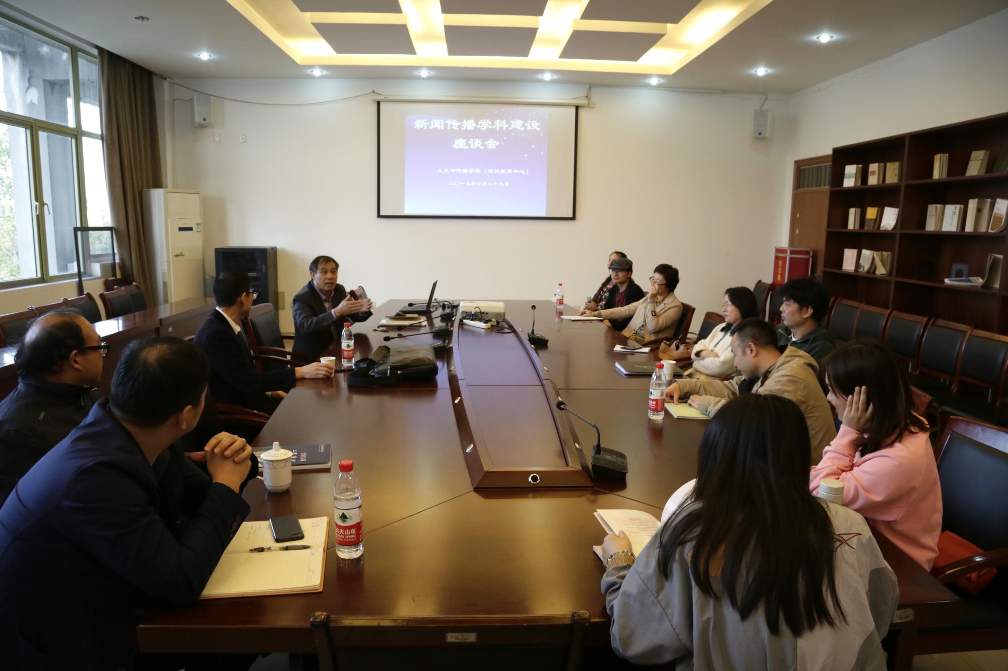 在7-404会议室召开了新闻传播学科建设座谈会,浙江大学传媒与国际文化学院院长、教育部青年长江学者韦路教授出席,学院领导班子以及新闻传播学全体教师参加了座谈会。
