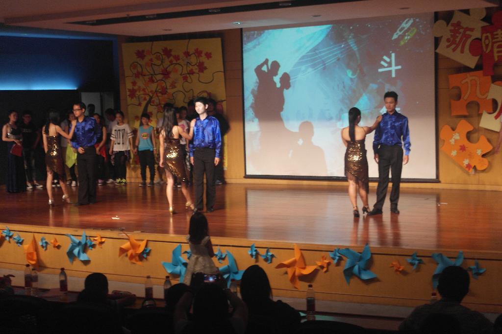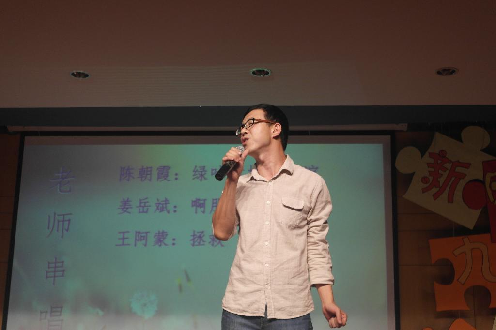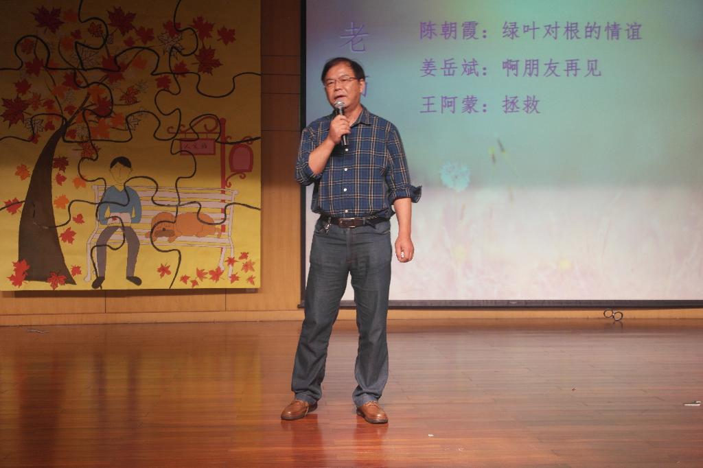 “……这是绿叶对根的情意……”唱着歌缓步出场的美女是谁?不是新手代表,也不是往届学姐,而是我们的陈朝霞老师。陈老师以一曲《绿叶对根的情意》开启了学院教师歌曲联唱的序幕,也将晚会带入了第二个篇章。王阿蒙、姜岳斌老师也纷纷登场献唱。台上老师们用情深意长的歌声诉说着对来自四面八方同学们的欢迎,台下同学们高举双手伴随着音乐挥舞。平时严肃的老师们的献歌将整场晚会推向了高潮。艺术团的同学带来的舞斗《舞林争霸》也是精彩非凡,两组同学在舞台上展开斗舞,用激烈的形式向观众们展现出多姿多彩的舞蹈,也赢得了全场观众的阵阵掌声。之后,师生联袂的诗歌朗诵令在场的各位深深体会到诗意的灵魂与生命.