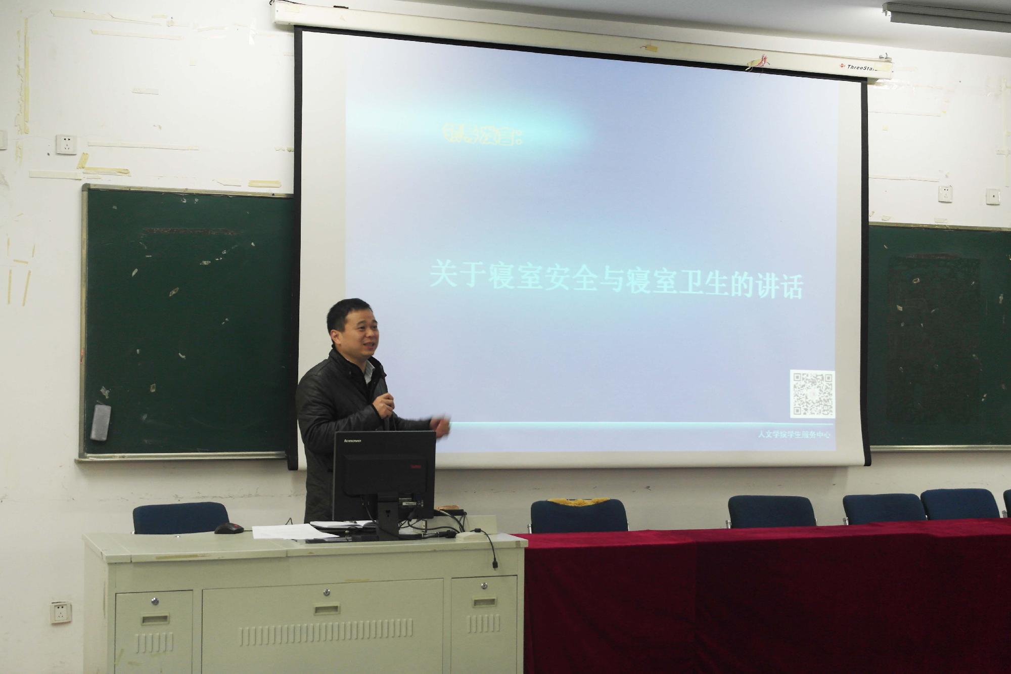寝室工作的一些不足,尤其在卫生方面需要加强,最后强调了大功率电器禁止使用的问题,督促大家为建设好人文学院寝室而努力。