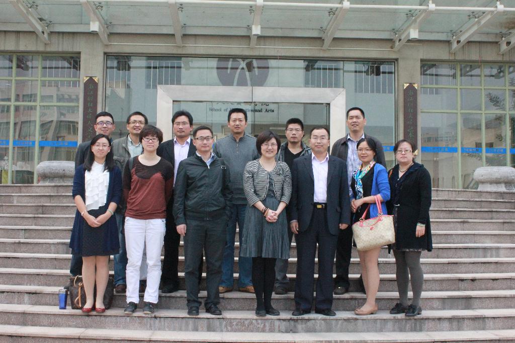 的教学和科研情况进行总体介绍之后,交流主要针对来宾们比较感兴趣大学语文和涉外文秘课程的教学方法、数字媒体艺术专业的办学经验等问题展开了讨论,其中,陈文辉老师在教学中采用的从文化创意资源角度讲解古典文学的经验和方法、赵顺宏老师的方法论授课理念、王阿蒙老师的实战式教学方法成为交流的亮点,王文奇老师向来宾介绍了成人在线
