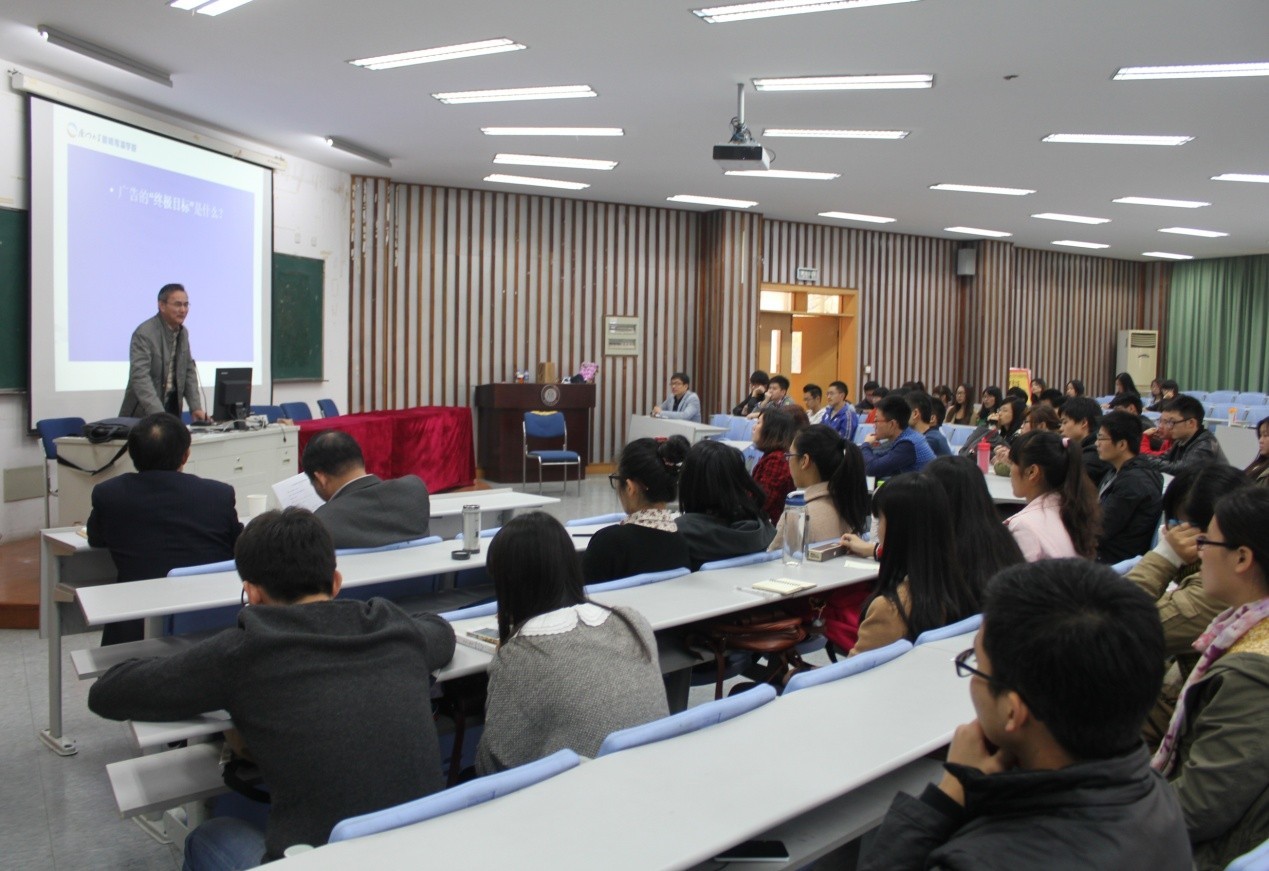 11月22日下午,人文学院7-112迎来了广告界著名的学者之一-----厦门大学新闻传播学院常务副院长、博士生导师黄合水教授。