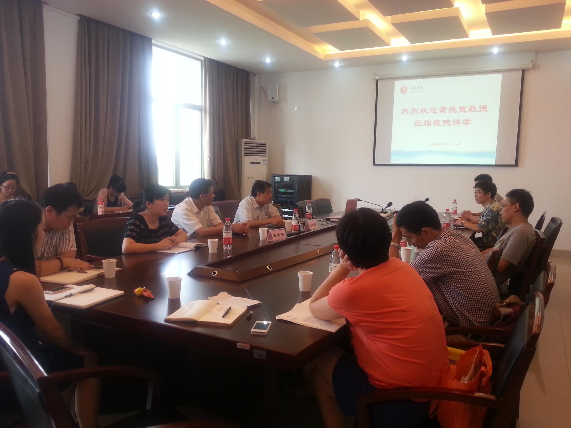9月28日下午,安徽大学原校长黄德宽教授应邀莅临人文学院,与部分师生代表亲切座谈。