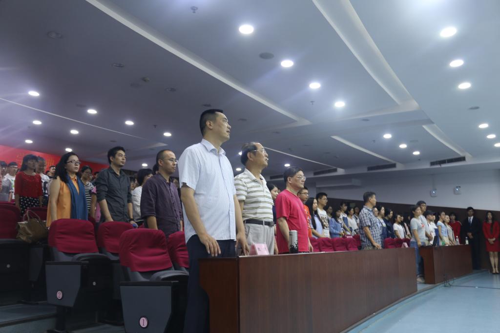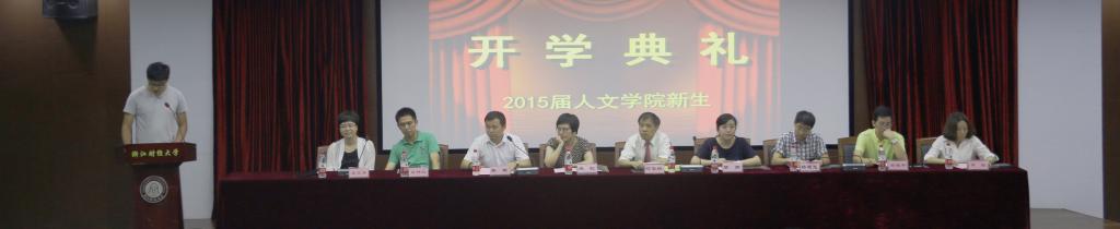 2015级新生开学典礼在学术四报告厅隆重举行。院长何华珍、党总支副书记(主持工作)高燕、副院长姚红、副书记吴玻、院长助理杨建忠和系主任出席典礼。典礼由吴玻老师主持,人文学院全体教工和2015级本科生、研究生参加。