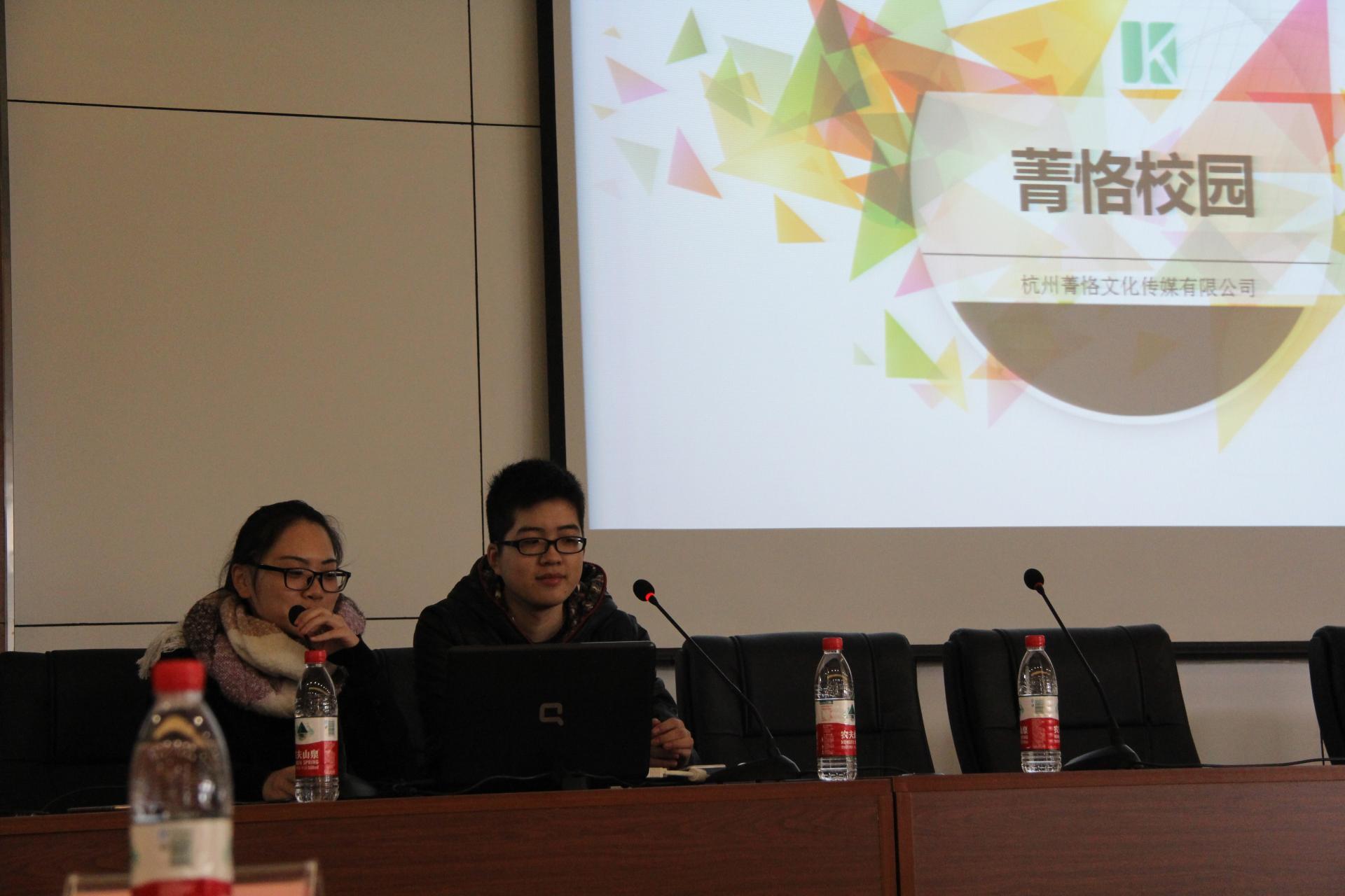 会上,“云书”团队向同学们分享了项目概况、创业心得和体会,告诉同学们创业不仅仅是一个不断学习和实现个人价值的过程,而且还是实现社会价值的过程。“菁恪校园”分享自己团队创业的组建和发展过程。“游集市”团队分享了作为一个旅游微平台,讲述了大学生创业过程中遇到的难题,以及解决的方法。接着,三个团队与成人在线
