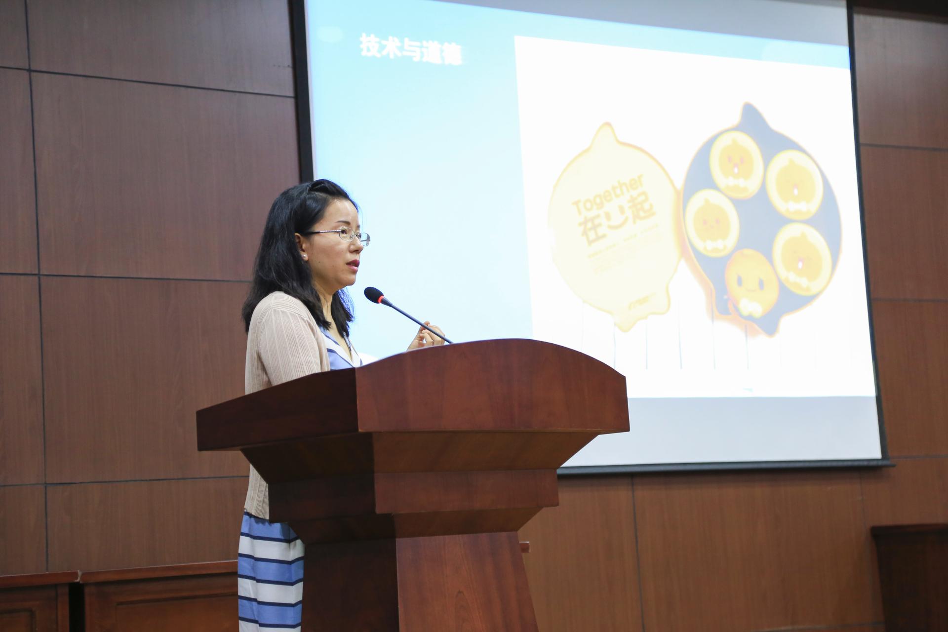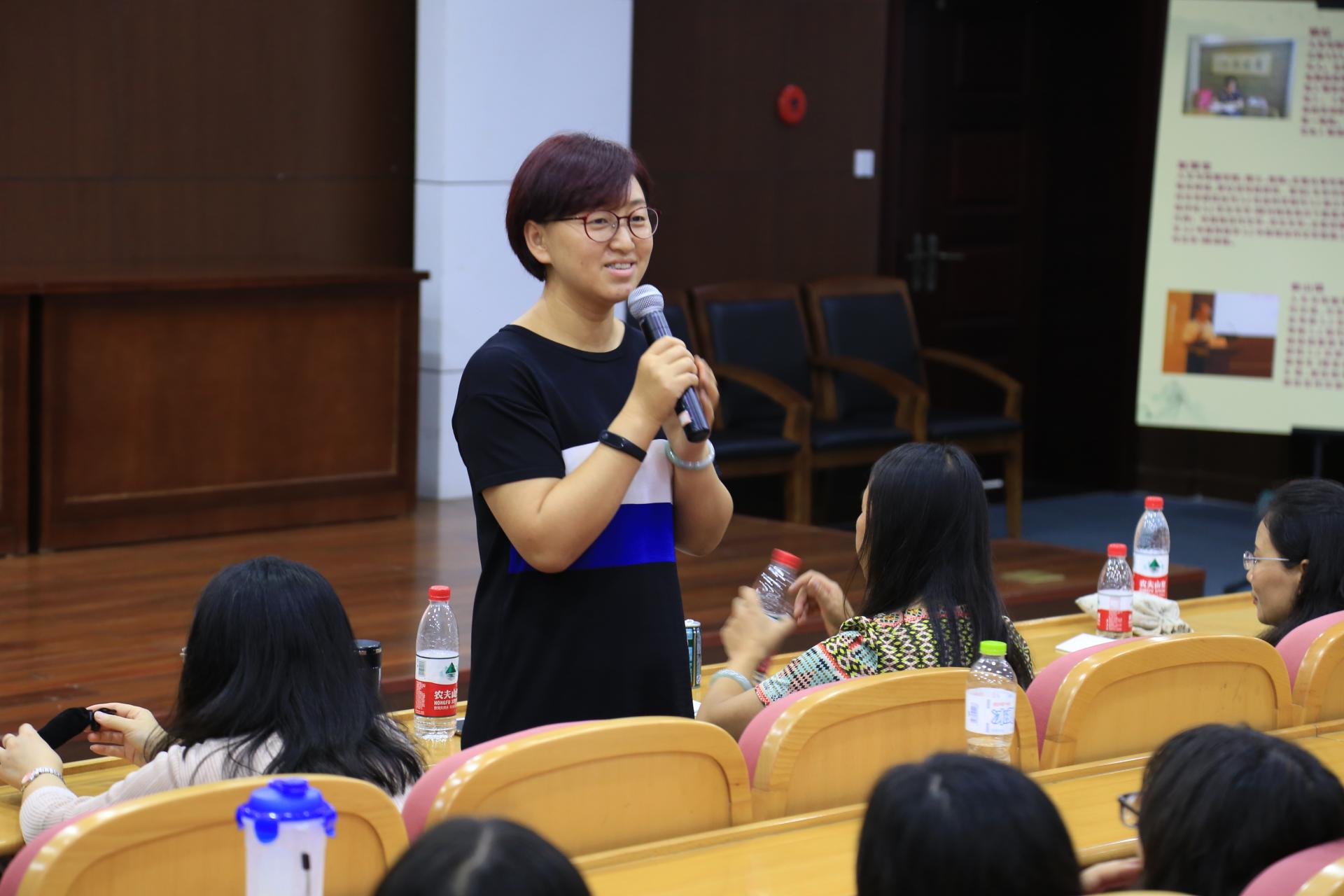 典礼第二阶段是题为《爱我人文,强我传播》的理想信念教育讲座。何华珍院长向新生解读了他在全校开学典礼的寄语:古人云,观乎天文,以察时变,观乎人文,以化成天下!希望同学们发挥文字的力量,点燃文学的激情,展开广告和数媒的翅膀,让中国文化伴随汉语国际教育走向世界,努力实现中华民族伟大复兴的中国梦。何院长以此为本次讲座的开始,向学生介绍了学院的基本情况后,依次邀请陈静、王阿蒙、刘亚辉、吴智斌和姚晓萍针对学院4个专业发言。她们结合自身的研究、平时对专业的感悟、自身在国外访学期间的所听所见所感向新生介绍了学院4个专业在国内外的情况、发展前景、专业发展方向及对专业的认识,希望新生树立远大、正确的理想,正确认识并喜欢上本专业,学会把读书、思考、实践有效结合起来,提高自身综合素质和就业竞争力。现场师生也进行了交流互动,学生根据自己关心的问题进行了提问,教师进行了一一回答。