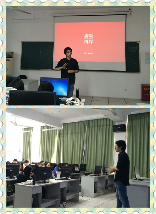 2013级广告专业学生讲授了一堂《怎样成为一名合格的广告人》的实践教学课。广告系主任李漪老师和专业教师张群老师一起分享了此次意义非凡的课程。