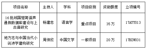 杨建忠教授申报的“16批战国楚简谐声通假数据库建设与上古音研究”和周保欣教授申报的“地方志与中国当代小说诗学建构研究”,获2017年度国家社科基金项目的立项。杨教授的项目为国家社科基金重点项目,是我校今年获得的两个重点项目之一,也是成人在线