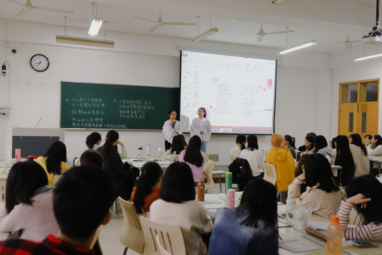 走过十年历程的红叶戏曲社,今日有机会走入学校《戏剧鉴赏》的专业课堂,翻开了戏曲社和戏剧课程共建的第一页。当2013年《戏剧鉴赏》设置新开课,主推昆剧,颇有曲高和寡之感。经过五六年的不懈努力,从最初的三五十人选课,有同学还戏称是给老师捧场,到现在成为“基本靠抢”的公选课。爱屋及乌,去年开设的文学专业选修课《中国古代戏曲鉴赏》,也很快受到其他专业同学的青睐。这系列课程的生存发展,实际上与其背后的校园文化基础,息息相关。成立于2007年,以“普及戏曲知识,提升戏曲知识与文化品位,弘扬民族文化”为宗旨的红叶戏曲社,其成员往往是戏剧选修课的铁杆粉丝。而戏剧课程又为戏曲社提供专业支持和展示舞台,也输送后备力量,培养了受众。课程建设与社团的发展相依相承,打破课堂内外的界限,资源互补,有力推动戏剧艺术的学习,成为成人在线