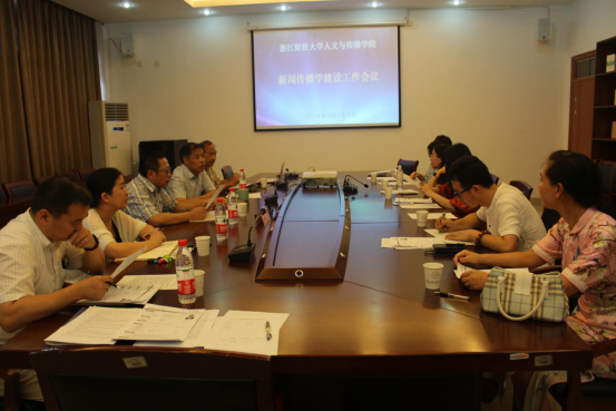 在7-404会议室召开了新闻传播学建设工作会议,特邀浙江大学求是学者、我校教授吴飞出席,学院领导班子以及新闻传播学科全体教师参加会议。