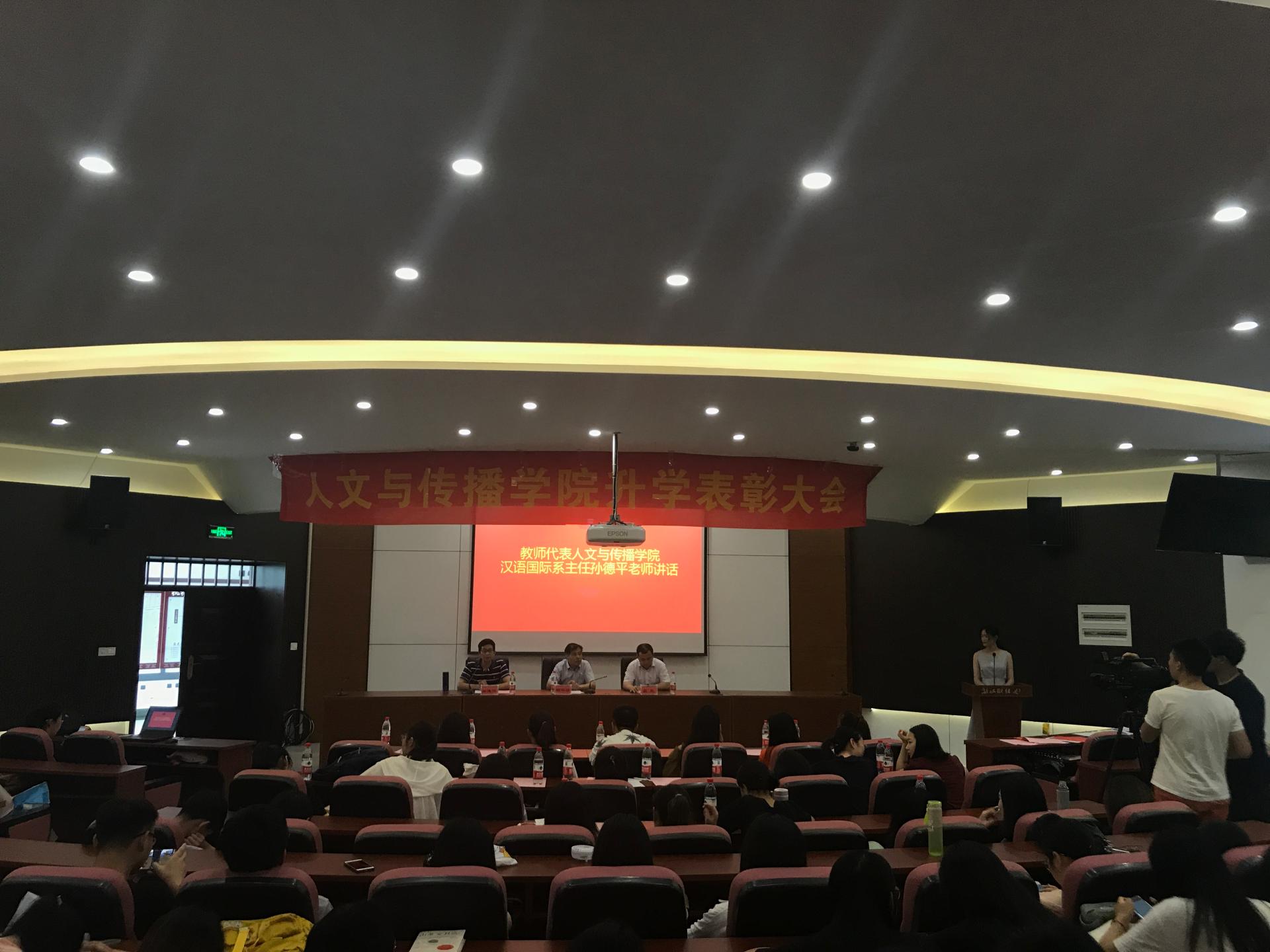 考研(出国)学生表彰大会在7号学院楼112报告厅举行。学院院长何华珍、党委副书记吴玻、汉语国际教育系主任孙德平,学院辅导员、2018届考取硕士研究生及出国深造的同学和2015、2016、2017级部分同学等参加了大会。