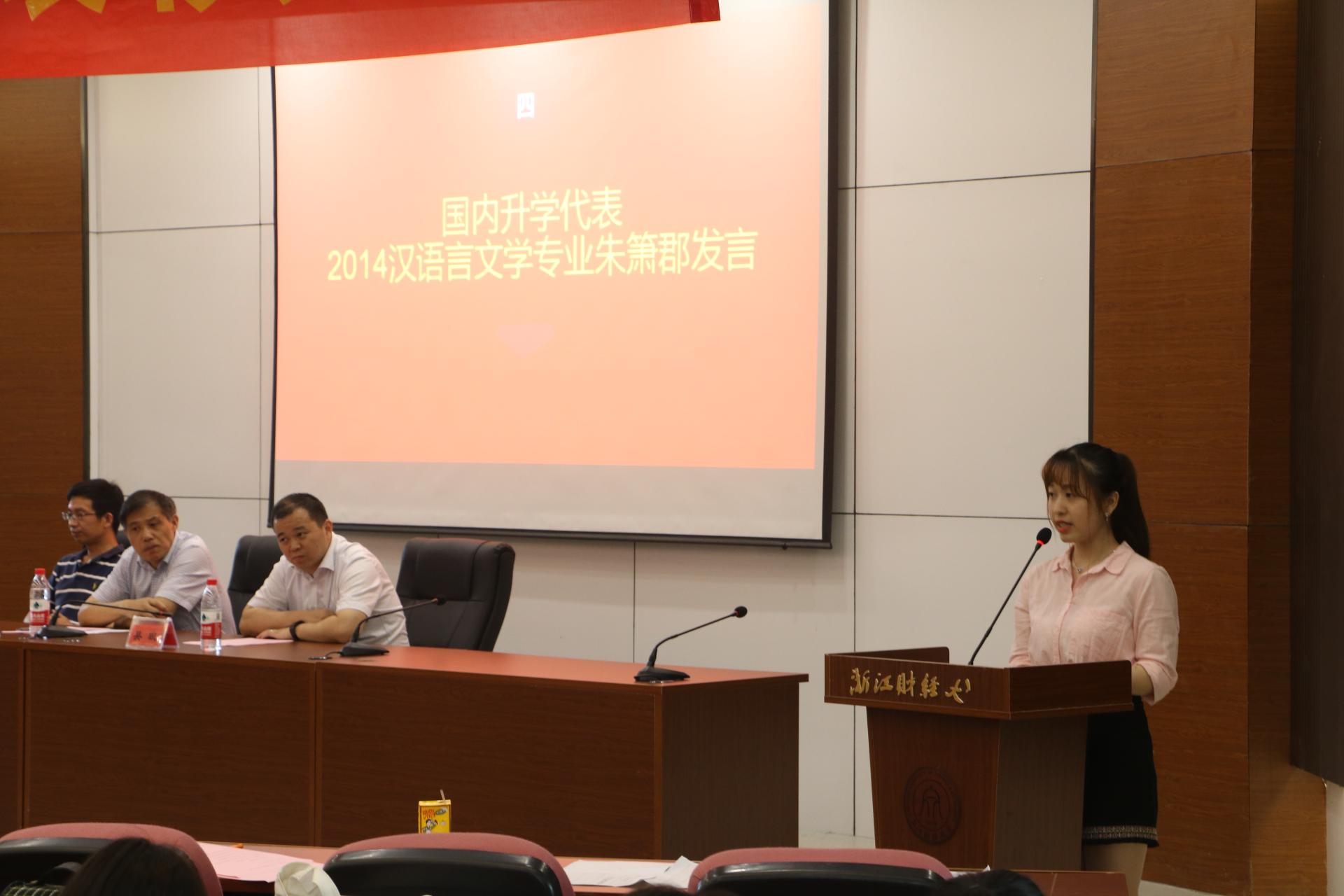 会上,院长何华珍代表学院讲话。他对被国内外高校录取的全体学生表示由衷的祝贺,向同学们介绍了学院发展历程,特别强调了学院这两年取得的骄人成绩,获批中国语言文学一级学科硕士点、汉语国际教育专业硕士点,中国语言文学学科获批浙江省“十三五”规划一流学科。何院长还深情地与在座同学分享了自己的考研、考博等奋斗经历,以此勉励同学们勤奋学习。他希望人文学子要有勇气和信心去追逐自己的梦想,要继续秉持“自强不息,追求卓越”的院训,在今后的考研(出国)中取得更加优异的成绩。