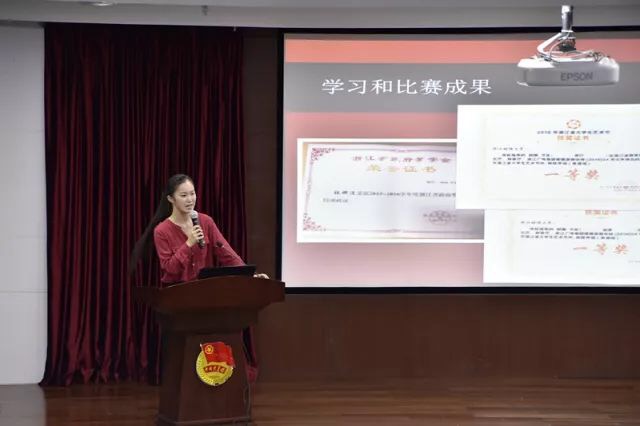 2015级汉语言文学班团支书通过现场直播的形式,将“国学启蒙”搬上评比现场,创新展示形式。她还运用图文向在场评委和观众们展示了三年来班级团支部在共同努力学习、志愿服务、国学传播等活动方面取得的成绩和荣誉,彰显了班级团支部的凝聚力和向心力。