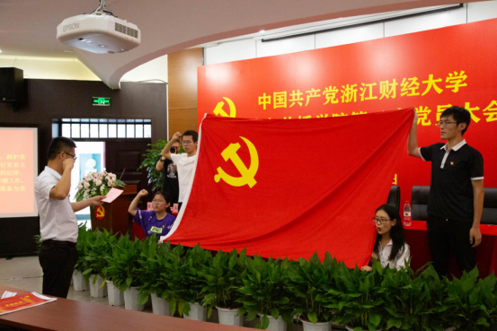 活动现场,全体师生党员重温入党誓词。在领誓人的带领下,全体党员对鲜红的党旗,高举右拳庄严宣誓。铿锵有力的誓词,表达了对党的赤诚之心,激昂的宣誓响声响彻会场,令人精神振奋、心潮澎湃。通过重温入党誓词,使师生党员们时刻牢记自己担负的神圣使命,以实际行动和进取心态恪守对党的承诺,永葆一名共产党员的本色。