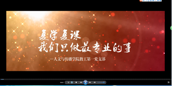 随后,观看《专业特长助力抗“疫”行动,党建引领凝聚支部合力》微党课视频。在“七一”到来之际,教工第一党支部毋丹老师录制了微党课视频,讲述了作为教育部新时代党建工作样板支部和浙江省高校党建工作样板支部的成人在线