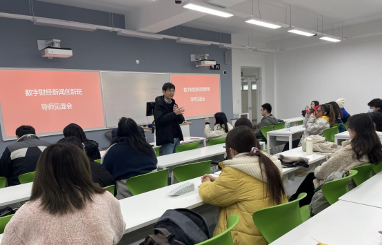 在A108教室举办2021级数字财经新闻创新班学生、导师见面会。本次见面会由创新班执行人王文奇主持,成人在线