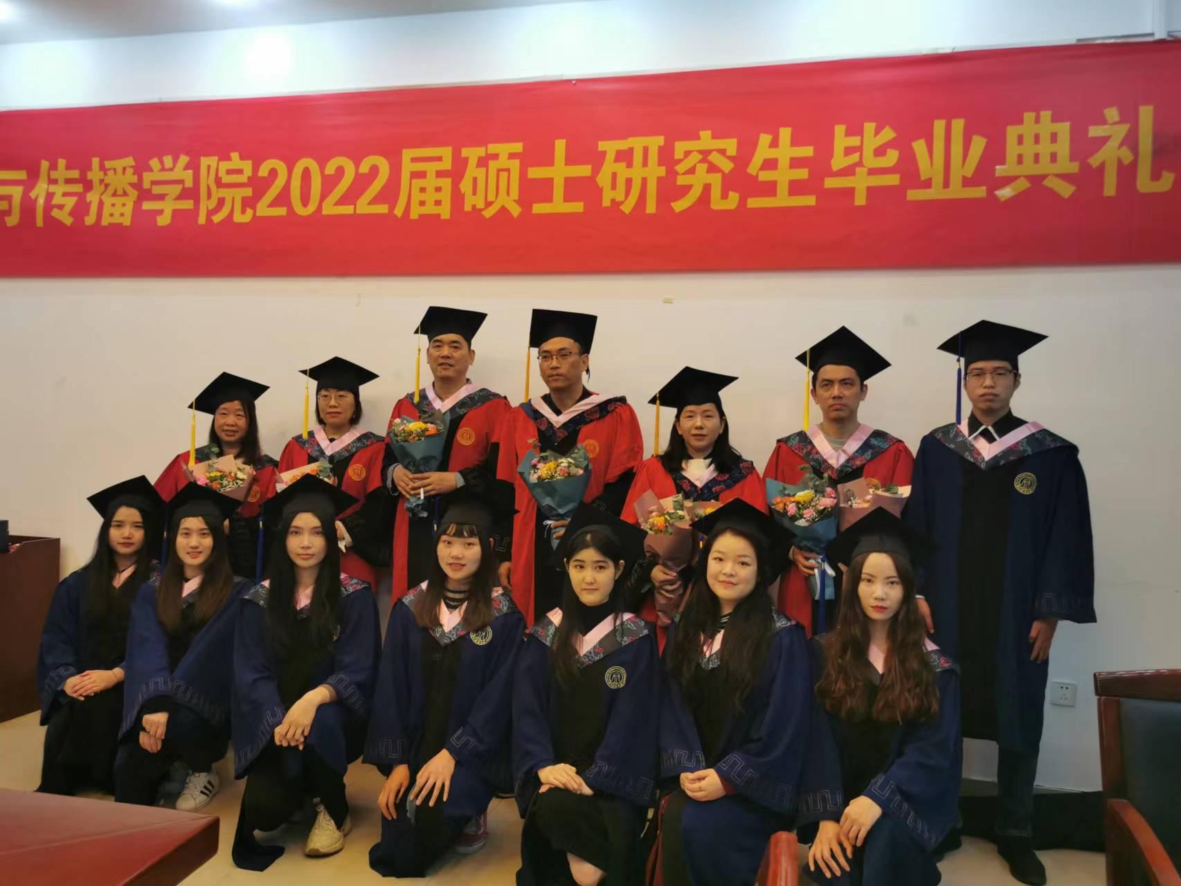 2022届研究生毕业典礼暨学位授予仪式在404举行。院长周保欣、党委书记高燕、党委副书记袁慧兰、副院长陈静、院长助理吴智斌、赵顺宏老师、荆亚平老师、吴时红老师、研究生辅导员刘华婷及2022届研究生参加典礼,典礼由党委副书记袁慧兰主持。