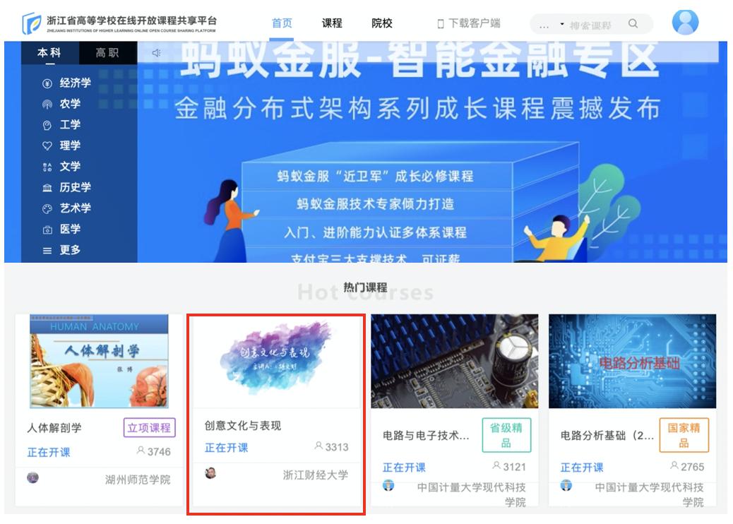《创意文化与表现》在提升学业挑战度、增加课程难度和拓展课程深度方面取得了积极成效,多次获“省平台”成人在线推荐为热门课程,先后被认定为浙江省首批一流本科课程(混合式)和第二批一流本科课程(线上),并于2021年获我校和省教育厅推荐参加第二批国家一流本科课程评选。