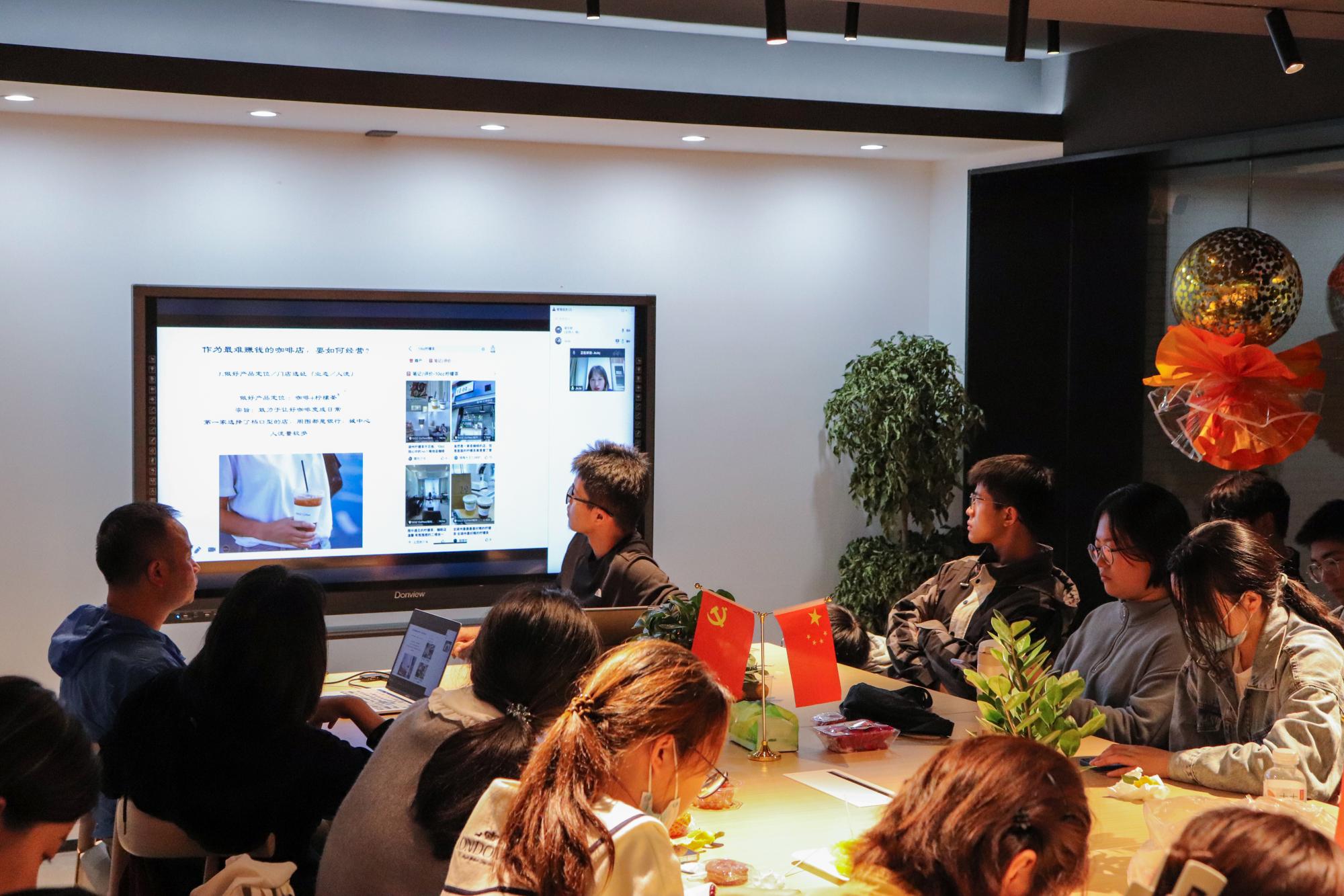 广告学专业2014年毕业的宋丹丹学姐作为本次活动的主讲,以“我是怎么想着创立10OZ连锁精品咖啡”为主题,跟同学们分享了她一路的创业经历和心得。22级新生班主任胡文财、辅导员顾雨濛以及22新传1班全体学生参加活动。
