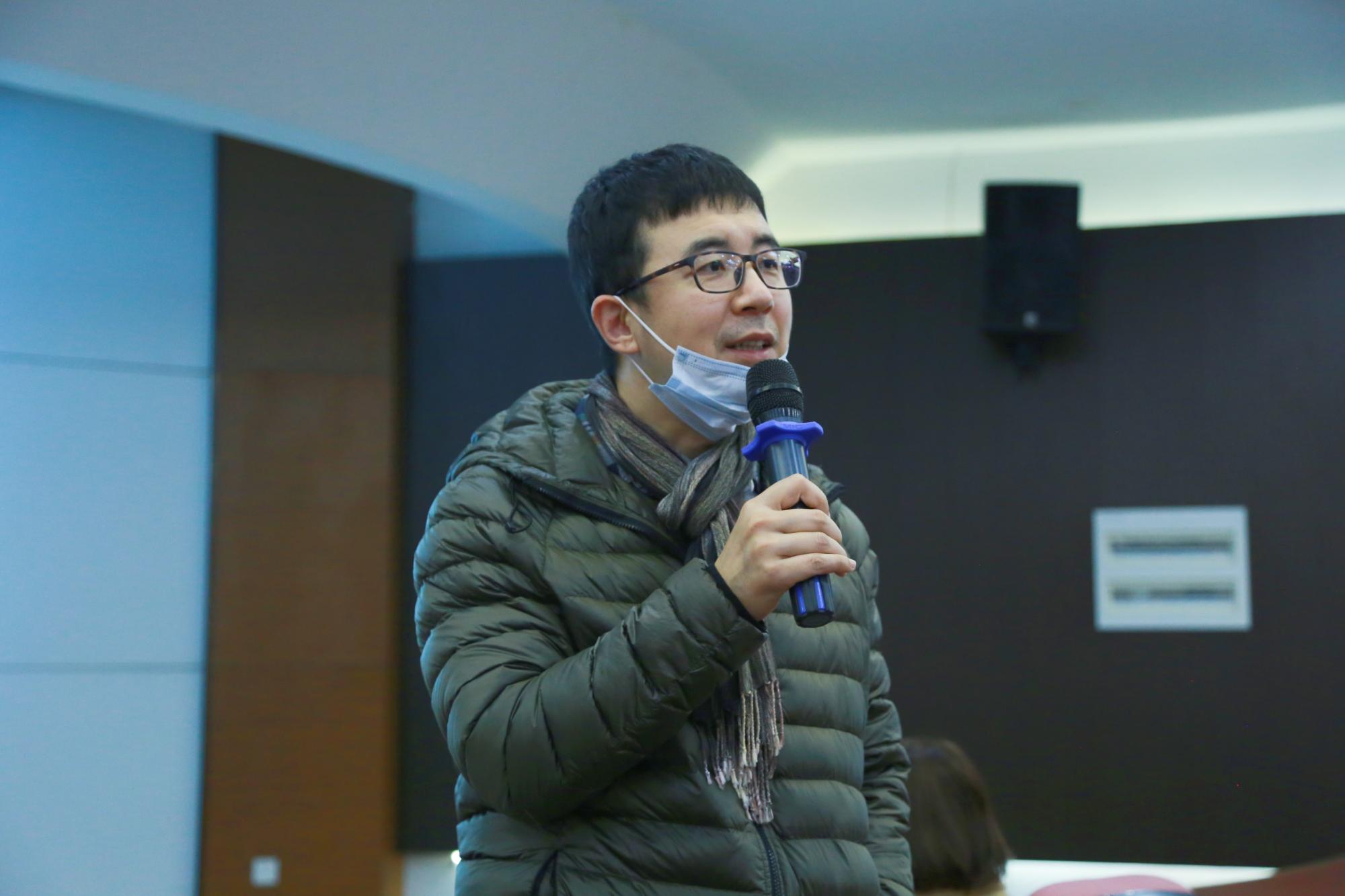 王阿蒙老师主持了点评环节,浙江日报社王建龙校友肯定了视频类作品的整体表现,表达了对作品《融化社恐的温度》、《履》的欣赏,他认为作品创意是核心,具备了这个“本”,下一步再去打造作品的“枝叶”。他还赞赏了作品《干票大的》故事完整,让人看到其中的巧思;《香茶里的松阳》系列短视频具有松弛舒适的配音。