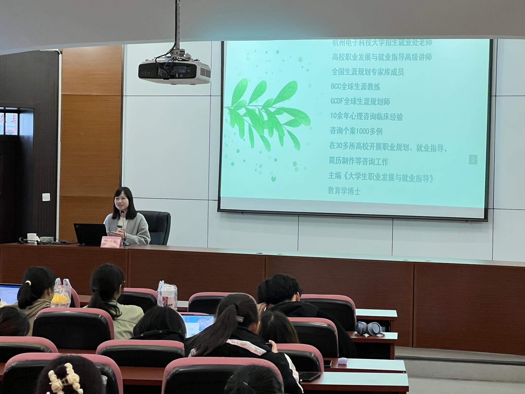 于3月28日下午在7号楼112报告厅举办2022级新生职业生涯规划讲座。本次讲座邀请杭州电子科技大学招就处叶琛琰老师开展以“春风化雨,规划先行”为主题的职业生涯规划讲座,学院党委副书记袁慧兰老师、辅导员马羚凯老师和2022级本科生参加,本次会议在辅导员马羚凯老师的主持下顺利开展。