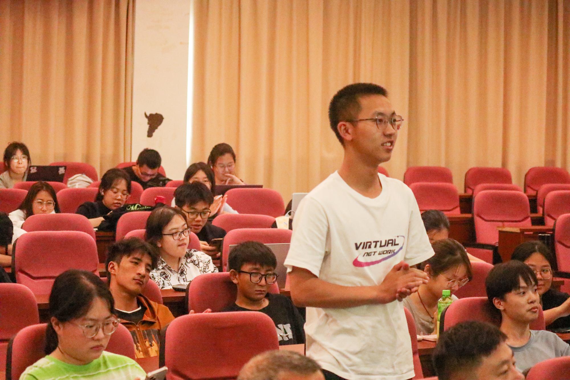 “专业并不能限制每个人的兴趣和特长。”殷老师向我们介绍了徐雪建学长从人文学院到安信证券公司的经历,鼓励同学们努力跳出专业的局限,用更广阔的视野看待世界。