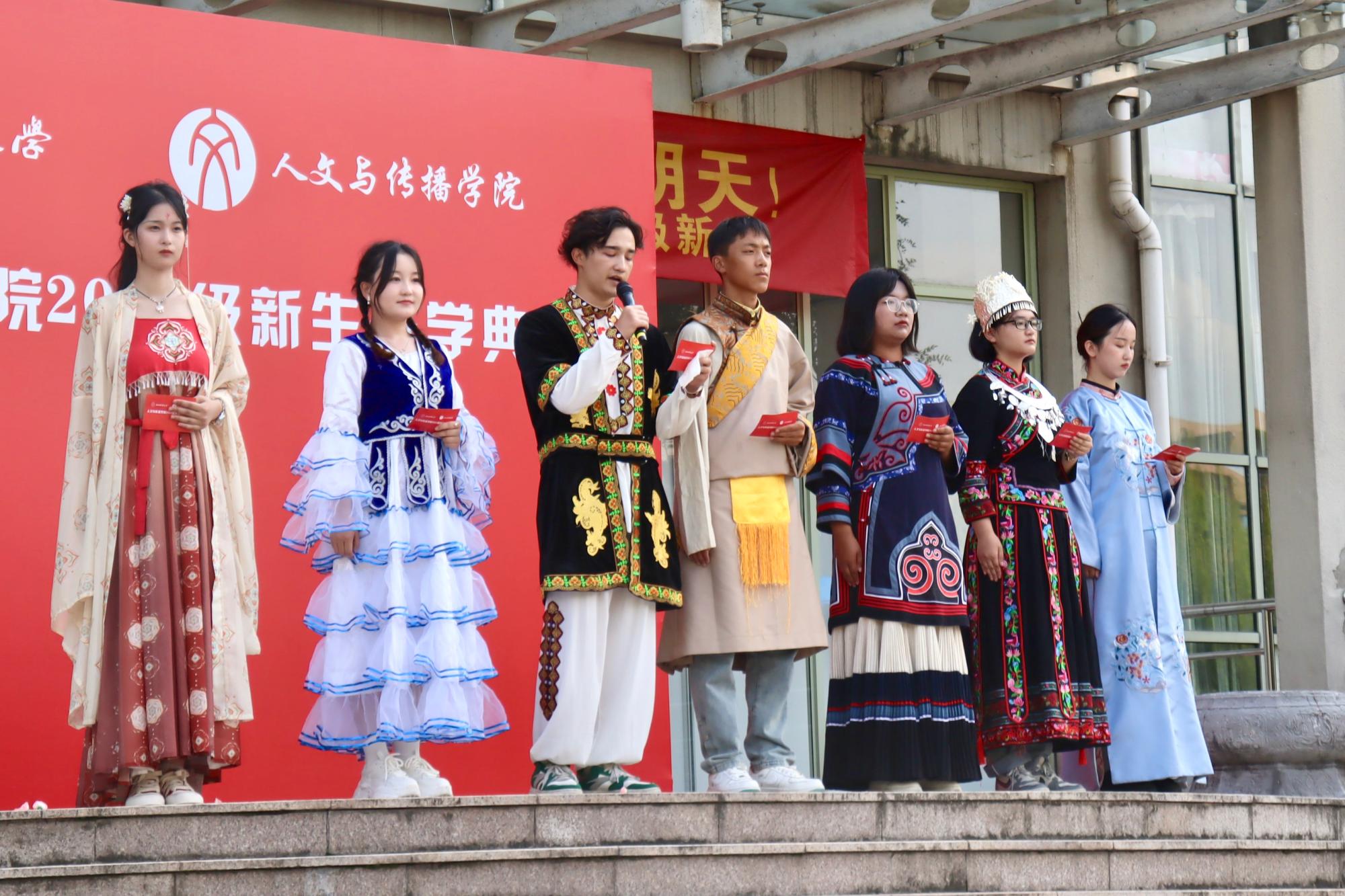 自古繁华不改,十里荷花仍在。来自汉族、彝族、哈萨克族、苗族、维吾尔族、藏族的人文学子共聚学涯湖畔,身着民族服饰,用本民族的语言发表入学感言,表达对新生活的美好祝愿,展现了泱泱华夏民族共同繁荣的盛况。钱塘学子勇立潮头,怀揣自信与坚韧,携手向未来,同心共筑浙财梦。