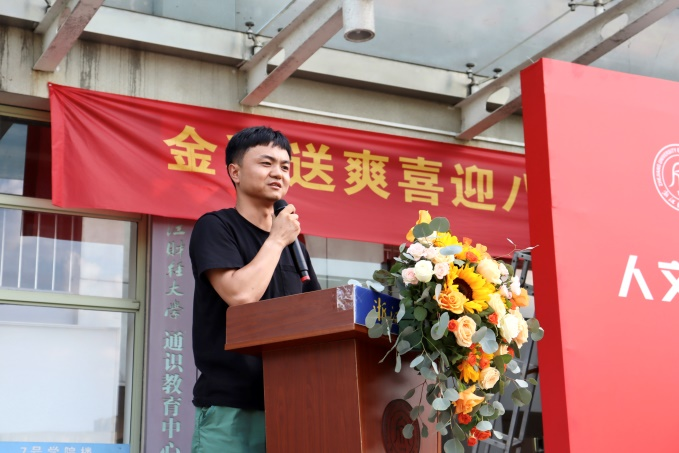 2014届数字媒体艺术专业毕业生王建龙校友与新生们分享了自己丰富多彩的校园生活,并真挚地表达了对学弟学妹们的殷切期望。他鼓励大家将大学视作全新开始,在大学里要勇于树立远大目标,保持松弛感,敢于尝试与创新,走出一条属于自己的康庄大道。王建龙校友的分享丰富了新生们对于大学生活的认知,增强了大家对全新征程的信心。
