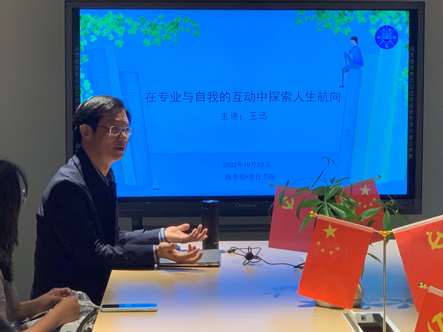 中文系教师、23文学3班班主任王迅作为本次活动的主讲人,以“在专业与自我的互动中探索人生航向”为主题,与同学们展开了关于大学生活的讨论。23文学3班全体同学参与了本次活动。本次沙龙活动是为了帮助大一新生尽快适应大学生活,加强新生对专业、自我、人生规划的认知,同时推进思政工作进园区的进程。