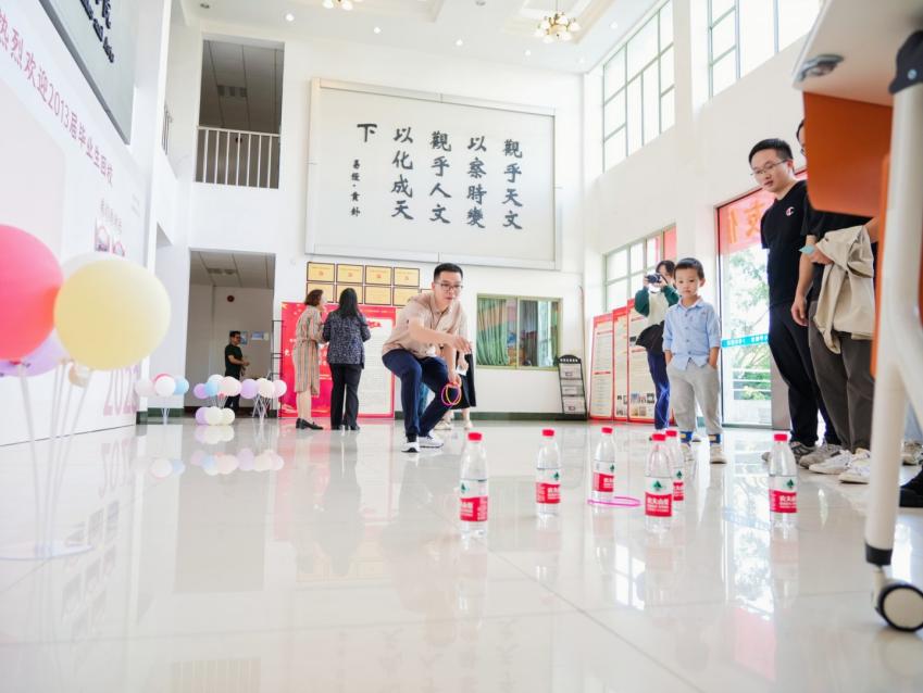 为2013届重返校园的学子们准备了以“语文”“摄影”“体育”为主题的游戏。在“语文”关重回校园考场,一道道文学常识题彰显校友充沛的专业知识。“摄影”关准备了校园各个角落的照片,十年过去,校园的一草一木、一楼一影仍然印在学子心中。通过最后“体育”关的投壶游戏,校友们来到抽签处抽取专属自己的纪念徽章、明信片、马克杯等浙财特色纪念品。