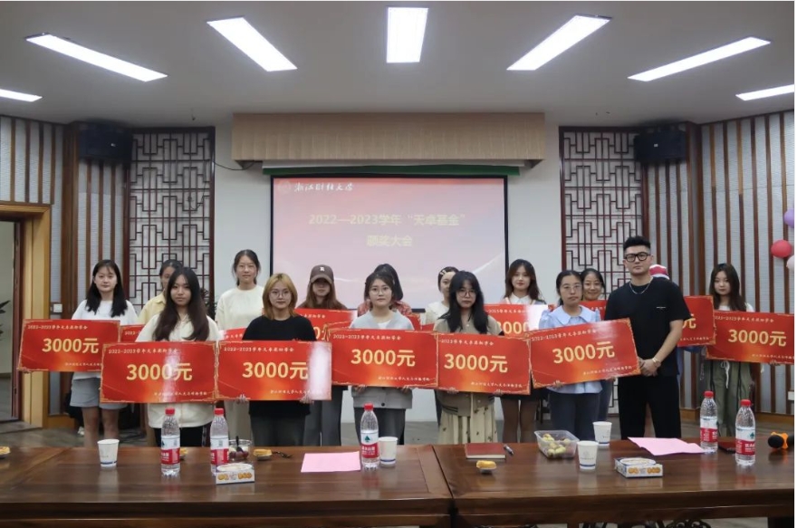 座谈会上,学院举行了“天卓助学金颁奖仪式”。天卓助学金是由成人在线