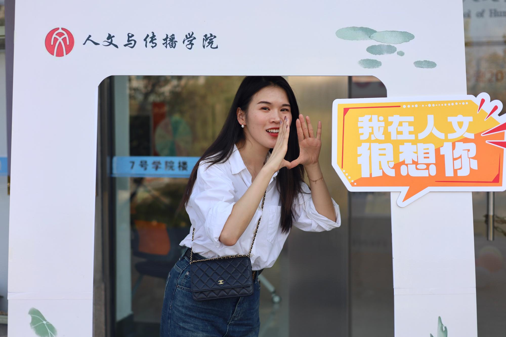在学涯湖畔搭建了签名墙与“我在人文很想你”朋友圈打卡板供校友们留影打卡。一次次抬手签名,一声声快门响动,让校友们这次珍贵的重逢定格在秋日暖阳中。回忆之中,校友们的笑颜同往昔一样纯真洋溢,十年如流水,我们怀念过去的美好,也共同走向更好地未来。