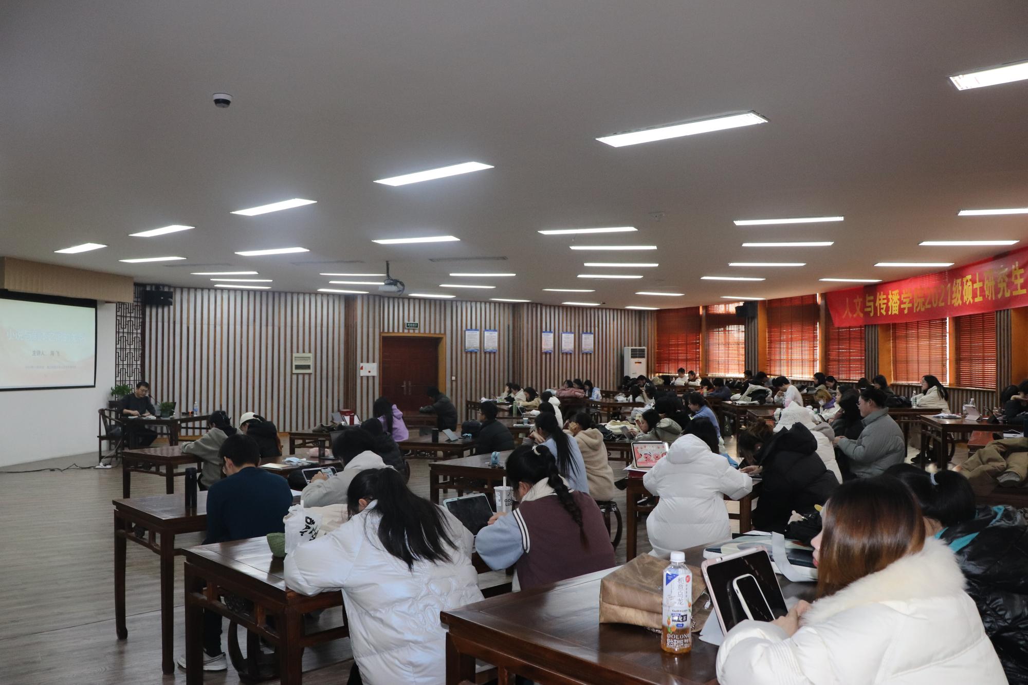 师生开展“小说与剧本之间的关系”的讲座,讲座由成人在线
