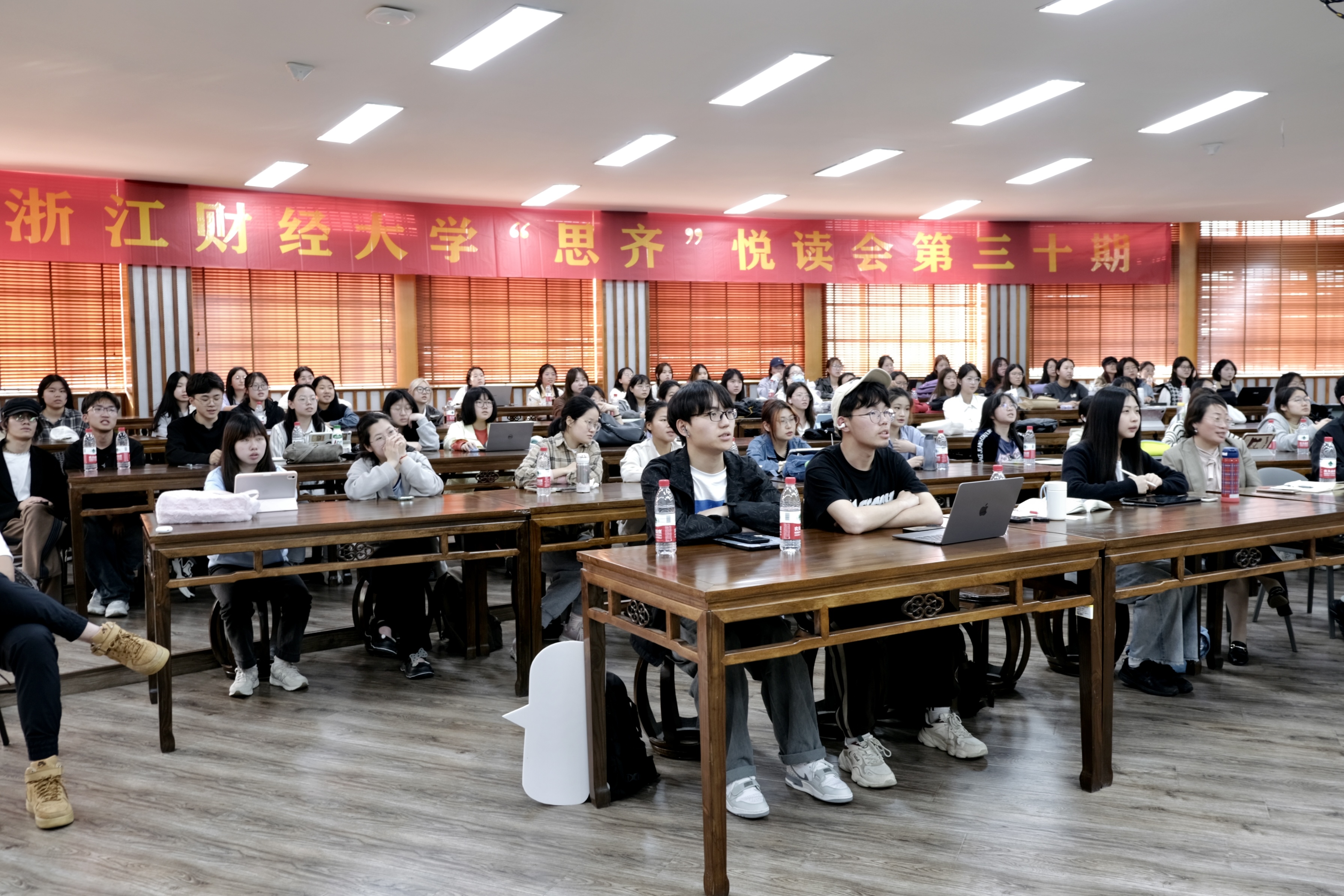人文学院第三十期“思齐”悦读会在学院楼问津书院隆重举行。此次读书会由人文学院荆亚平教授主讲,党委副书记袁慧兰主持,辅导员刘财国以及来自全校八十多位同学参加。