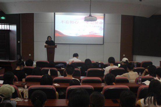 随后学院党委书记高燕以“不忘初心 牢记使命”为题,向全院师生讲授专题党课。课上高燕书记结合党课主题以“共产党员该如何做?”为切入点,层层深入,引发了在座全体师生党员对于党员责任担当的思考。接着,高书记从“坚定信仰”“增强党性观念”“不忘初心”“勇于担当”等四个方面回答了党员的使命和责任。