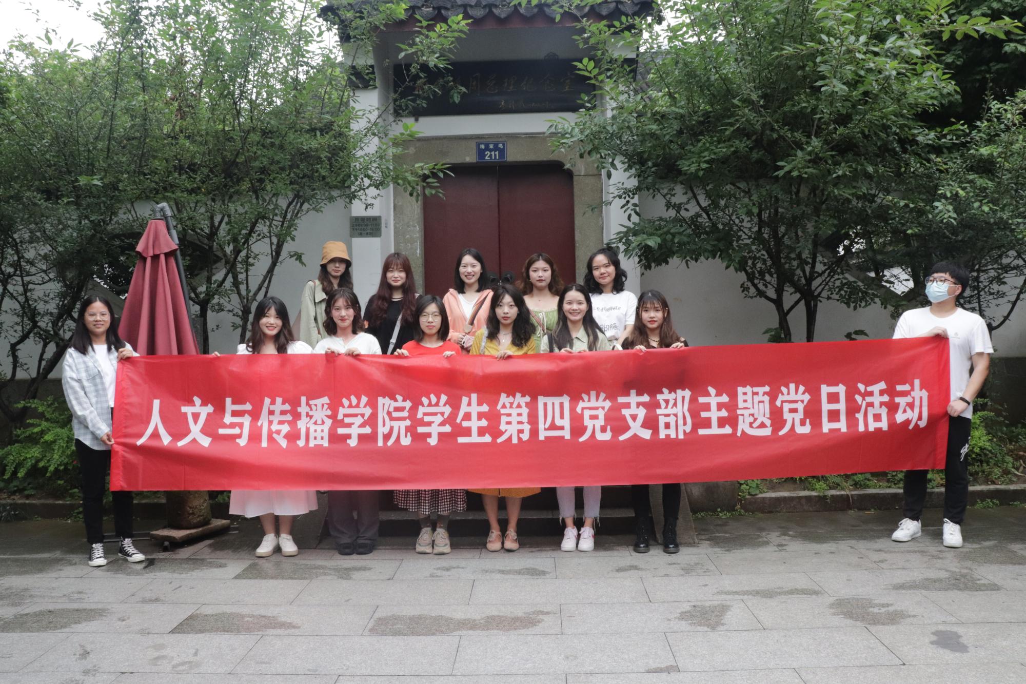 学生第四党支部组织全体党员、入党积极分子、入党申请人共30余人赴梅家坞周总理纪念室,开展“沿红色足迹,学党史党风”主题党日活动。
